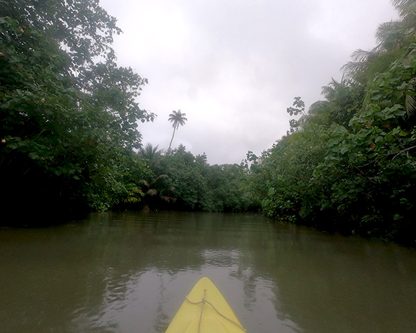 Retomamos el camino inverso para llegar al brazo izquierdo del río. ¡Un escenario impresionante: estábamos sumergidos en la jungla bajo la lluvia, como auténticos aventureros!