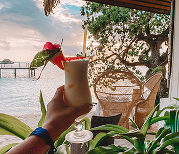 Para la parte «mar» del día, tomamos una piragua a motor en dirección a una típica granja de perlas. La jornada concluyó en un islote privado entre danzas polinesias y un excelente plato típico: pollo, coco y arroz. ¡Regresamos al hotel, un poco de descanso y happy hour!