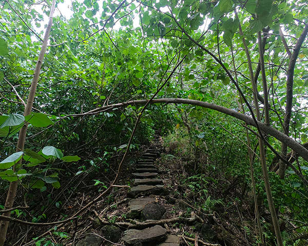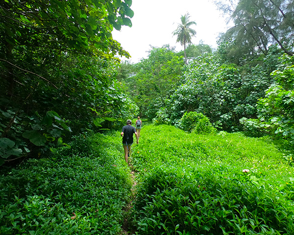 Nos mostró una ruta de senderismo para subir a la cima de una colina con unas vistas impresionantes. Hace algunos años, en esta parte de la isla, había un hotel 5 estrellas de lujo con cabañas en los árboles que fue destruido en 1998 por un tornado. Durante el recorrido aún se pueden ver algunos restos.
