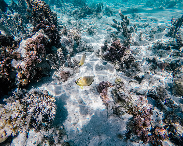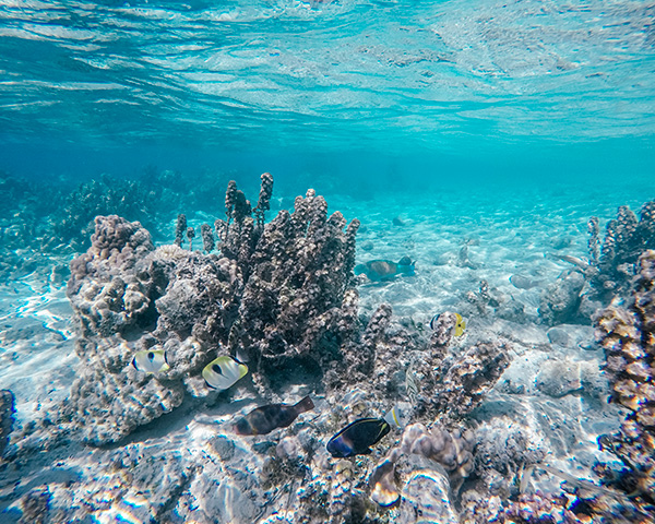 Despertar a las 6:30: ya vivimos al ritmo de los verdaderos polinesios, que se levantan y se acuestan temprano. Tras el desayuno, tomamos el flotador para llegar al famoso punto de snorkel recomendado por Andrea. ¡Es un pequeño motu a la entrada de la bahía de Bourayne que podemos definir como un auténtico acuario poco profundo y de una transparencia extraordinaria!